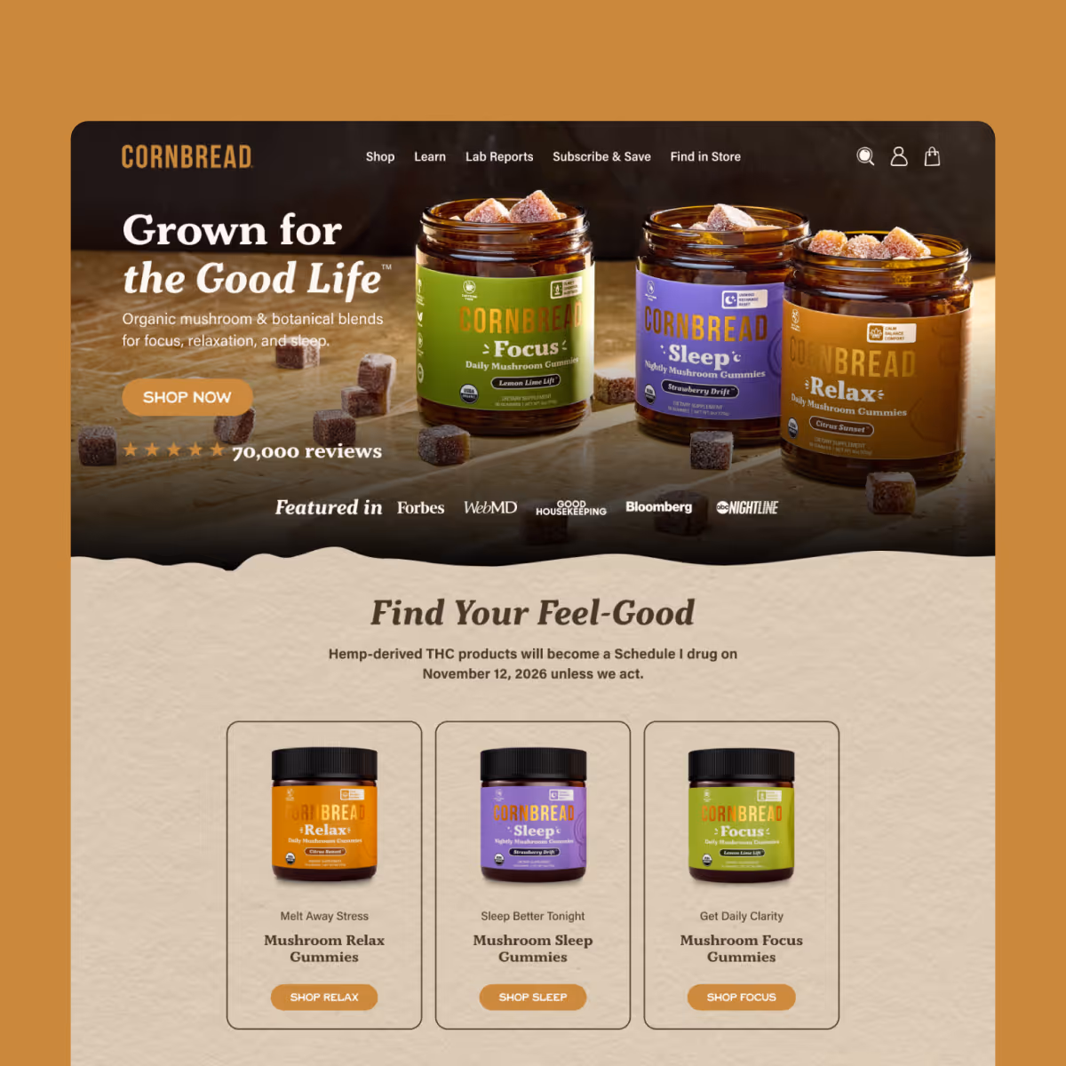 Visual Language: We crafted a clean, product-forward design system that reflects Cornbread natural, organic identity. By leveraging their brand colors, typography, and subtle rustic elements, the website communicates a sense of trust, quality, and elevated wellness at every touchpoint.